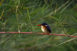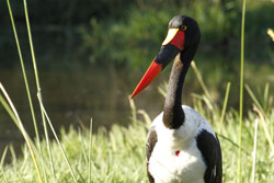 Again an early, 6:00am, start to the day to get to Lake Panic before the rush hour. On the way down we spotted three Hyenas sleeping at the roadside, what looked to be a mother and two youngsters, they dozed around, stirring only briefly. Lake Panic was its usual self with all the usual suspects in attendance, only today there were two guest appearances; a Malachite Kingfisher and a pair of Saddle Billed Storks. The tiny, iridescent Malachite darted around, flitting from perch to perch to get the best view of breakfast before snatching an unfortunate fish from the larder. The Saddle Bills appeared together and stayed around for an hour helping themselves to the fresh supplies. A pair of Bushbuck wandered into the wetland nibbling away at the tender shoots growing at the edges.