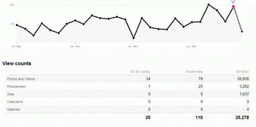 Well, I’ve just passed 35000 views of my photostream photos and sets on Flickr. Whilst it might not sound too impressive, that’s 35000 more than if I had not posted them & we take ’em to share ’em don’t we?