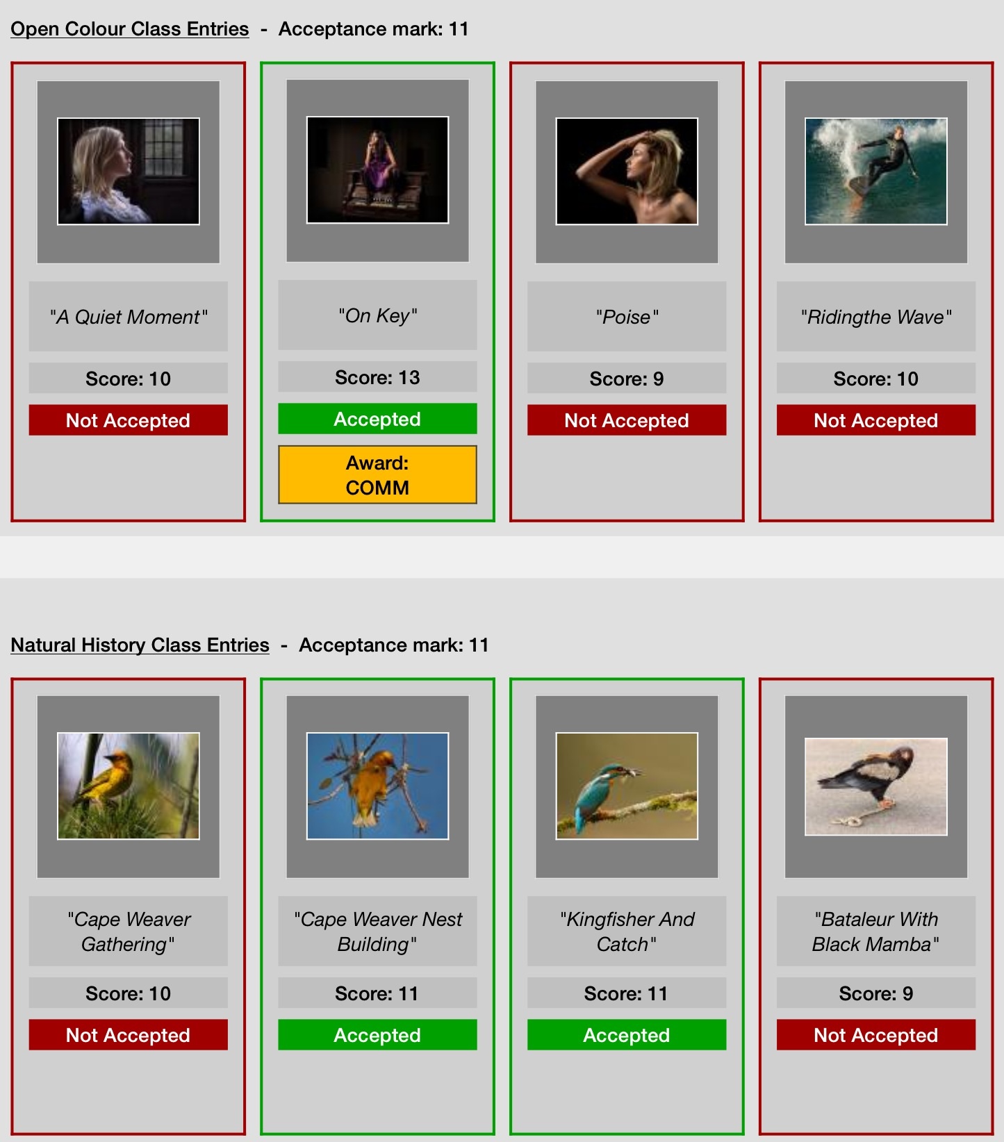 This was my second attempt and I used some of the same images again to test the water with and a better success rate has resulted; 3 out of 8 were selected and one image even got a ‘Commended’ in the open colour. The decision now is – can the images that have been accepted in one exhibition but not the other be improved to get a higher success rate or do I move on?