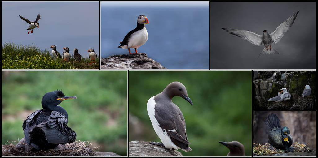 I spent an early June weekend visiting the Farne Islands off Northumberland’s coast, this is an area well known for the seabird colonies that it supports. The best trip for photographers is the Billy Shiels ‘all-day’ trip which visits both Staple Island and Inner Farne, the two islands with the largest colonies of birds and costs £35, leaving from Seahouses. The trip chugs out on the ‘Glad Tidings’ boat, initially around the islands before mooring alongside Staple Island. On the way you will probably see the local Grey Seals sun bathing and bobbing about in the sea plus as you get closer a multitude of birds on the surface of the sea or flying back and forth to the islands. The first thing that you notice is the strong smell of guano coming from the white stained cliffs which does fade as you accustom yourself to the environment. Once on the island it is so easy to dash from one place to another as there is so much activity all around you but you benefit from being selective and sticking with one subject at a time and familiarising yourself with the bird’s behaviour. The second stop is on Inner Farne where you will be greeted by the Artic Terns who are fiercely protective of their nests. It is highly recommended that you don a hat as soon as you disembark Glad Tidings – you will soon realise why. Once over the initial shock you will marvel at the persistence of the Terns as people walk the boards past their nests. It is worth noting that there is a £6 entry fee onto each island as they are National Trust land so take you membership card if you have one.