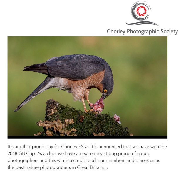 One of my camera clubs has just been crowned the best nature photography club in Great Britain in a close fought competition. The standard of nature photography is outstanding in the uk and particularly in Chorley PS so I count myself fortunate in having an image included in this winning panel. Follow this link to visit the club website for more details.