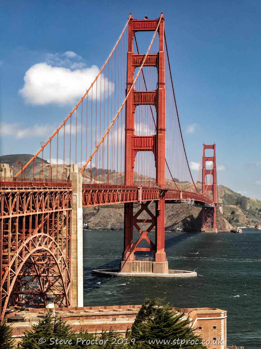 The Golden Gate Bridge is a suspension bridge built in 1933-37 that links San Francisco with Marin County to the north, costing in excess of $35m at the time. It is an instantly recognised structure around the world and as I was in the area it was on the list of things to photograph, luckily the weather held and the mist rose to reveal the bridge in its glory. I took shots from both the eastern and western sides of the bridge and also tried to capture the flow of traffic by shooting straight through the towers in a less conventional manner. The bridge has been declared one of the Wonders of the Modern World by the American Society of Civil Engineers and it’s fairly easy to understand why.