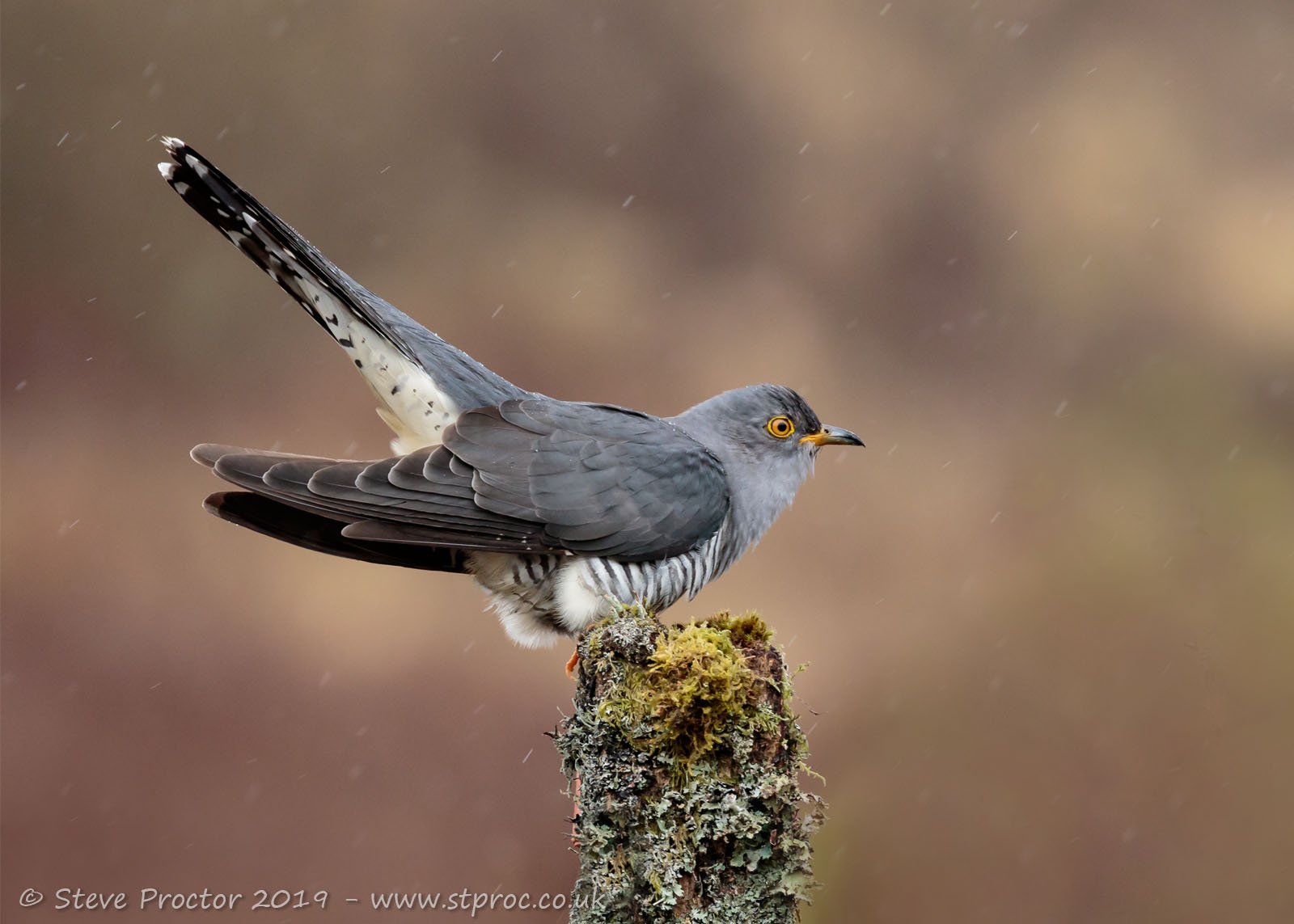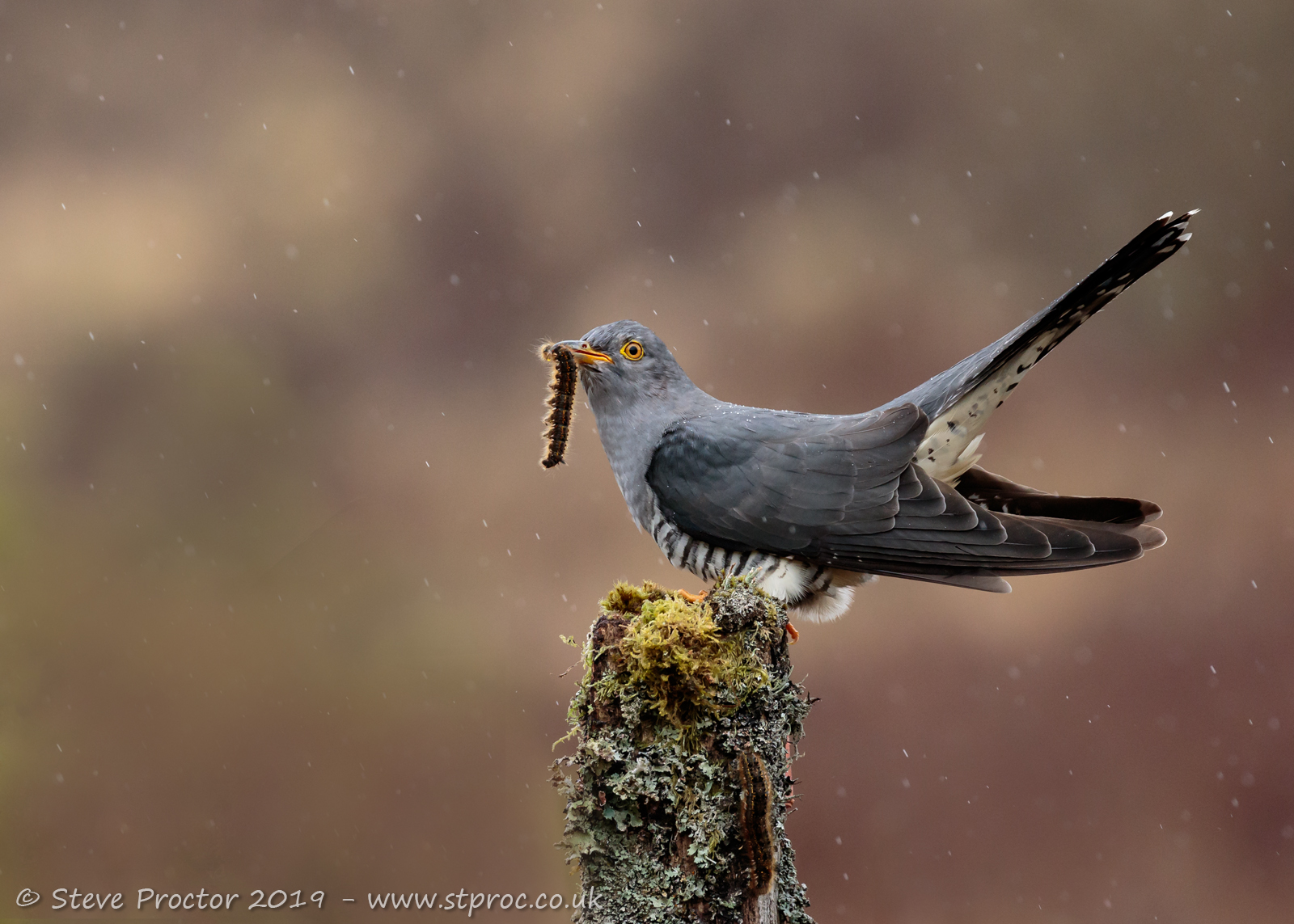 The Cuckoo is a bird that was often heard but rarely seen, nowadays it isn’t heard that often either. As I’ve been roaming about the countryside I feel that I’ve been lucky if I hear one a year these days and until this occasion I had never actually seen one. This particular Cuckoo was photographed on an upland moor on the edge of pine forests in Scotland and it was only seen for 3-4 minutes so I had to be quick. The poor light and rain made for difficult photography conditions but with the help of boosted ISO and a long lens the following images were captured. I took over 200 shots in those 3-4 minutes but there was a lot of repetition, thank goodness memory cards cheap and reusable.