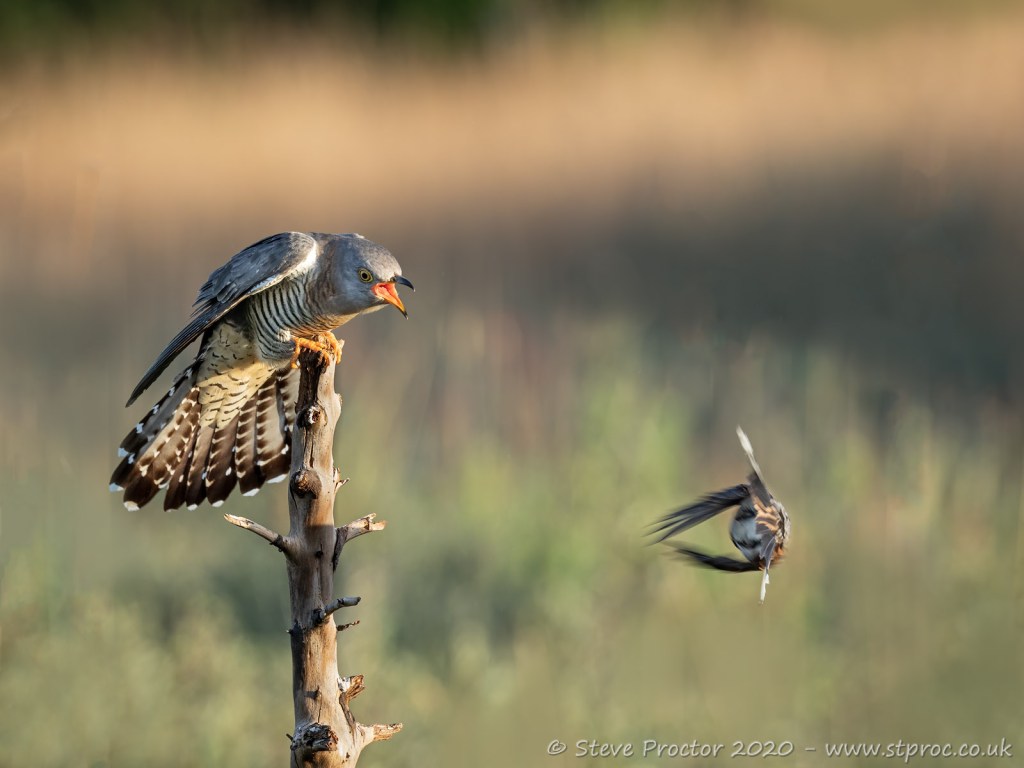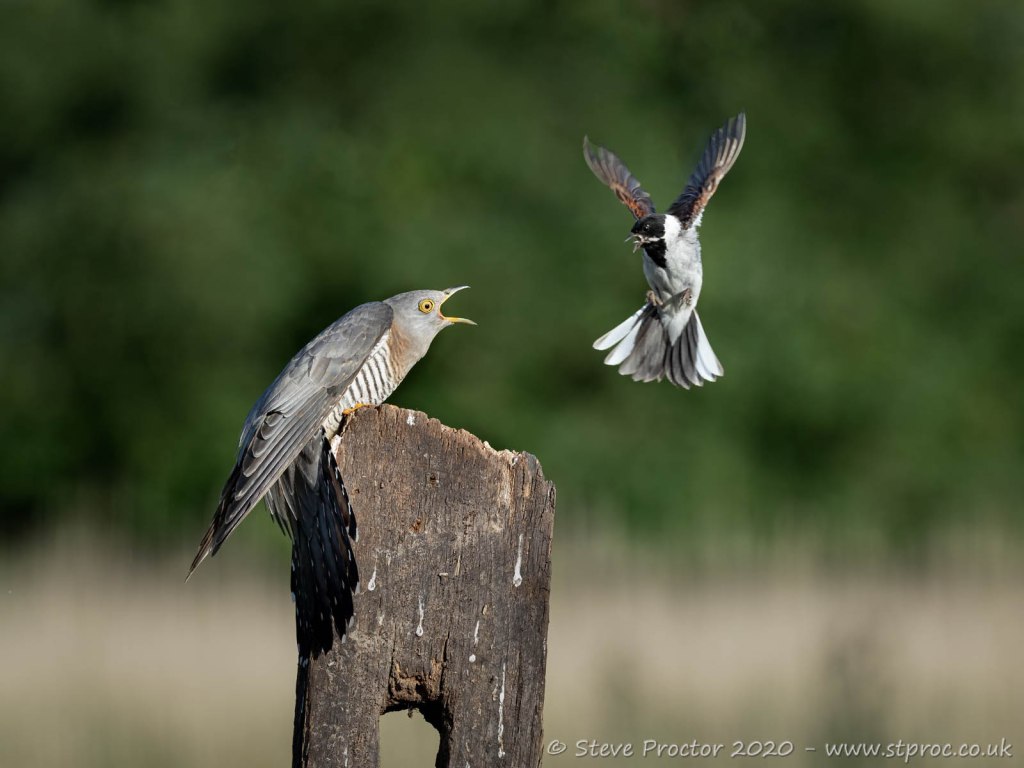 Whilst photographing the Cuckoos mentioned in an earlier article, it became apparent that the local Reed Buntings were not pleased to see them in their locale. What ensued was a high speed dispute where the female Cuckoo in particular became subject to an ongoing aerial bombardment from their much smaller combatant. The Bunting would dart in stopping just short of the Cuckoo in an attempt to drive them out, something which was largely ineffective. The following images were shot in reasonably bright early morning sunlight at upward of 1/1000 of a second shutter speed and an ISO also above 1000, even so the images still show an amount of movement in the attackers wing tips.