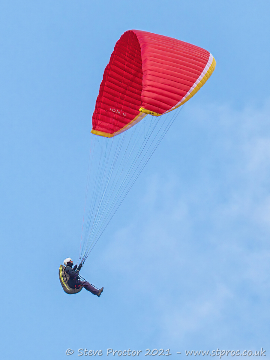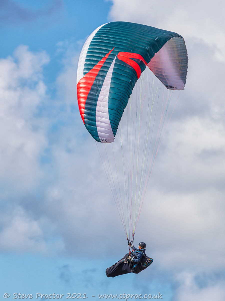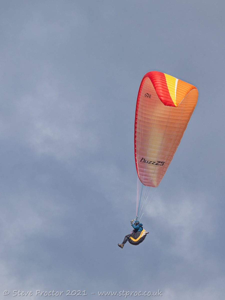 As I was relaxing at home I noticed a paraglider over Pendle Hill. It was a bright sunny day so I grabbed my camera, put the 500mm lens on and promptly drove to the Wellsprings Inn and parked up. I hiked up the hill, no mean feat in my post-Covid world and started to grab some shots of the abundant paragliders in the air. With the prime lens on I was limited to the distances I could shoot from, often they were just too close or too far away, any way I managed quite a few images. One of the problems with photographing these subjects is the sheer size of them and in particular the distance of the paraglider from his canopy, it’s easy to have them spread across the frame with little of interest in between.