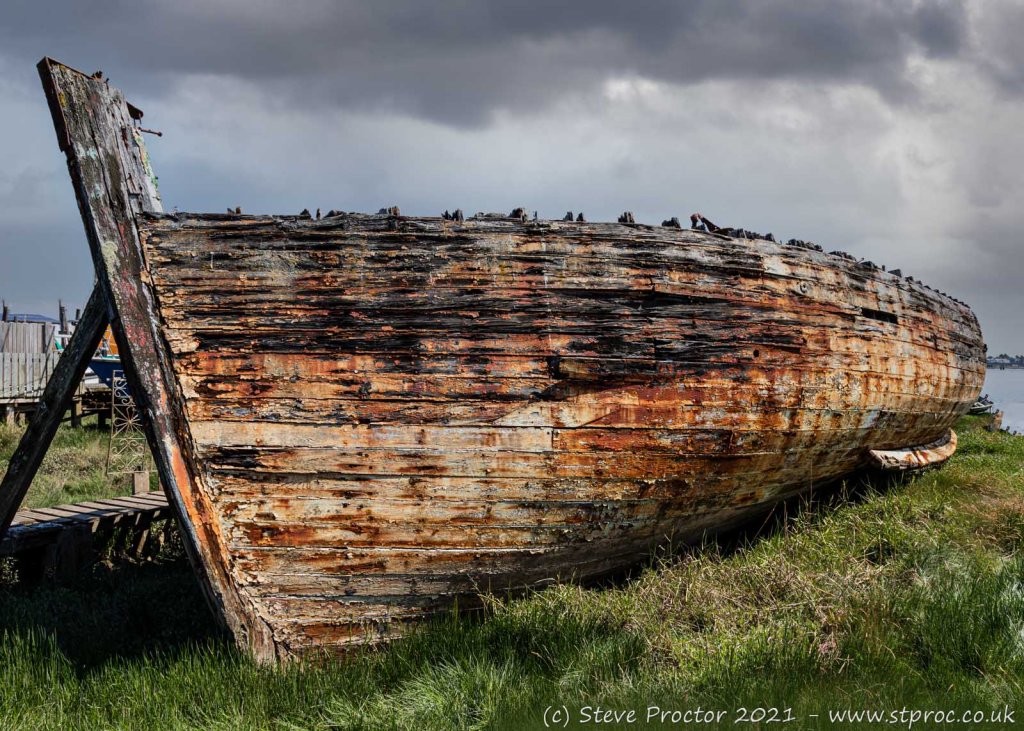 The photos below feature the MFV Good Hope, a once proud trawler which was first launched in 1948 from Wick. It was decommissioned around 1984 before being bought with a view to restore and was then brought to Skippool creek. The trawler is now in an advanced state of decay with the wood rotted throughout and totally unsafe to board. When I was last there in 2009 the cabin was still precariously perched atop the hull, alas this has now succumbed to decay.