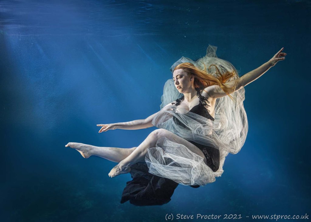 I had an underwater shoot booked at Tankspace near Nottingham which was something new, something I had little information about but it looked like it should be good fun. Basically, the setup is a large tank with a glass front measuring approximately 3m wide, 2m high and 2m deep. This tank is lit by a range of LED lighting from either side and above.