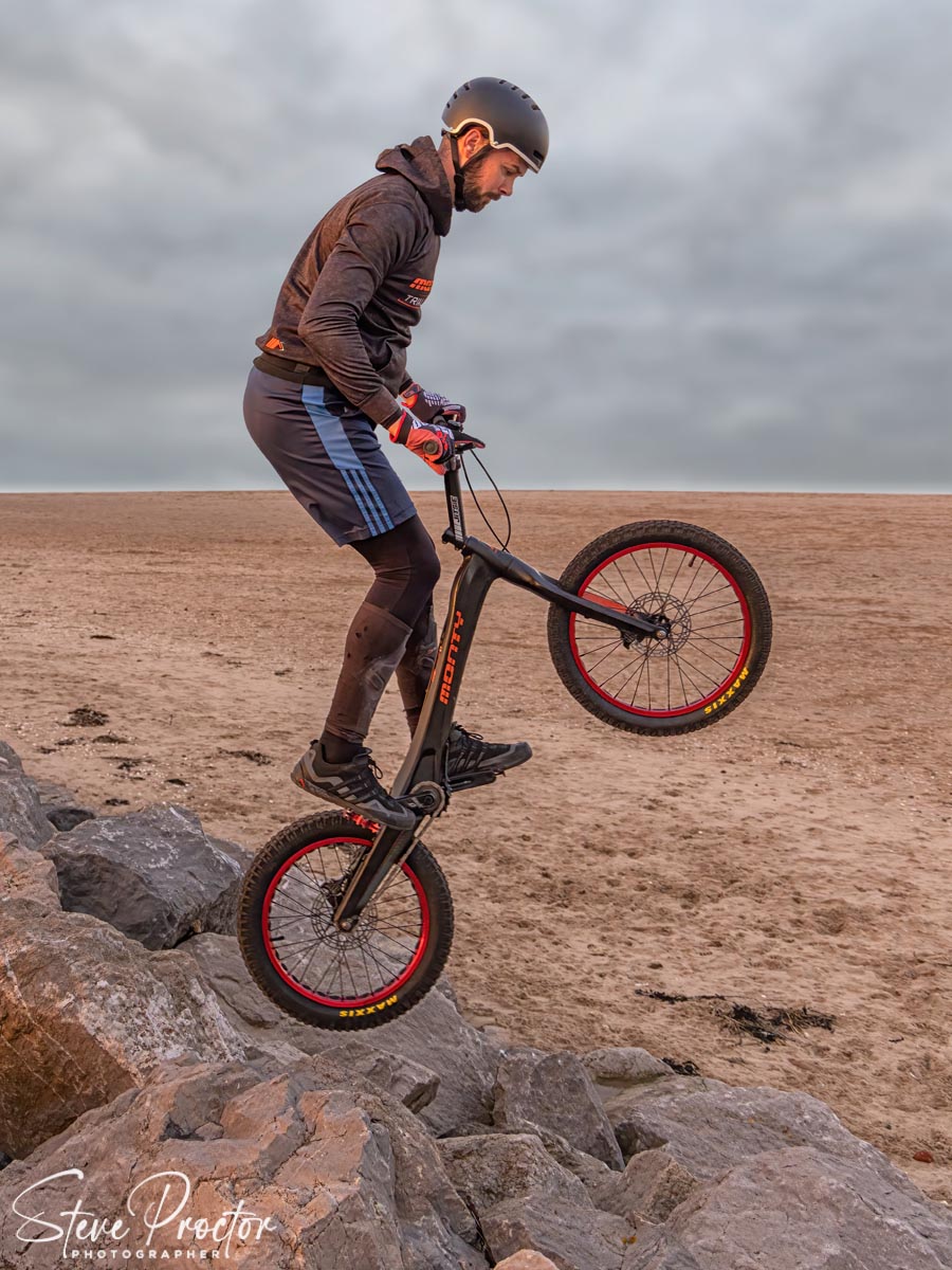 As a bit of luck at New Brighton, I stumbled across a BMX stunt rider practising his skills on the rocks. I stopped to watch for a short while to watch then asked if I could grad a few shots to which he agreed. I stayed for around 10 minutes watching and shooting as he leapt with skill and balance from rock to rock. Fortunately there was still just enough light to be able to be shoot at 1/800sec to freeze the action.