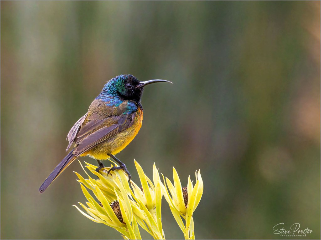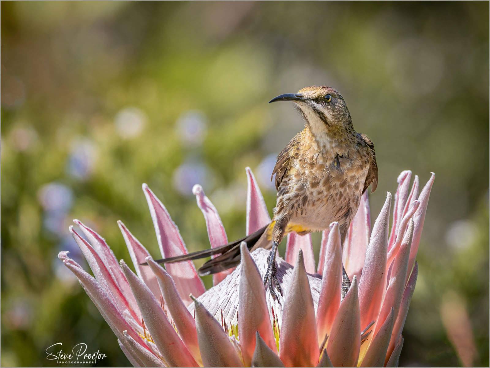 From my research I’d decided that I would love to see the Malachite and Orange-Breasted Sunbirds above all others. We quickly located these as they flitted quickly past, occasionally posing on the magnificent Proteas which were in full bloom and bursting with nectar. We also saw Cape Sugarbirds, the male having an amazing long tail on display. The Cape White-Eye was a regular visiting with many other small, colourful birds that are endemic to the Cape area.