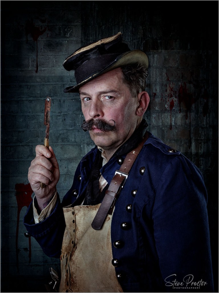 Finally, a shot of Dean as the Demon Barber – Sweeney Todd, again shot in a small hall. Set up was a simple backdrop, one light to the left and a few ideas in my head. Again, a very quick session where I grabbed half a dozen images.